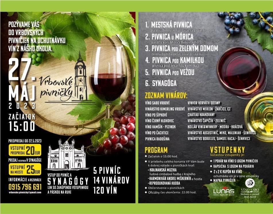 Pozývame Vás do Vrbovských pivničiek na ochutnávku vín, dňa 27.05.2023.