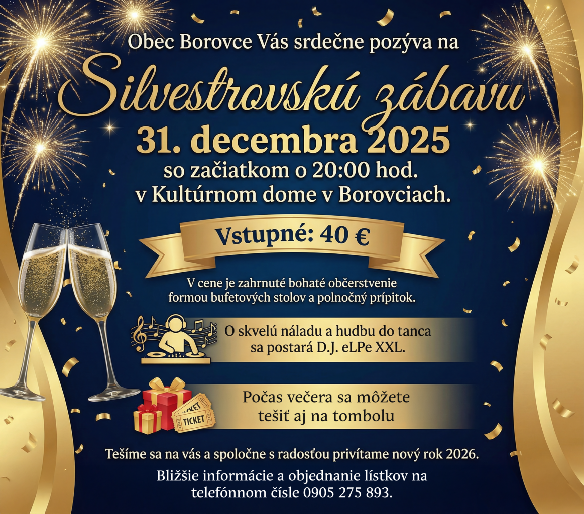 Obec Borovce Vás srdečne pozýva na Silvestrovskú zábavu 31. decembra 2025